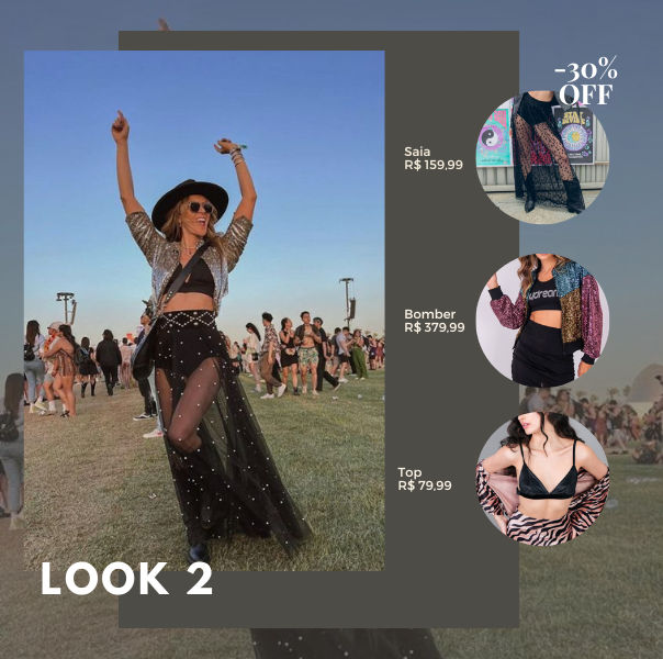 Saia de Tule || Shortinho || Top || Bomber de Paetê || Bota Western