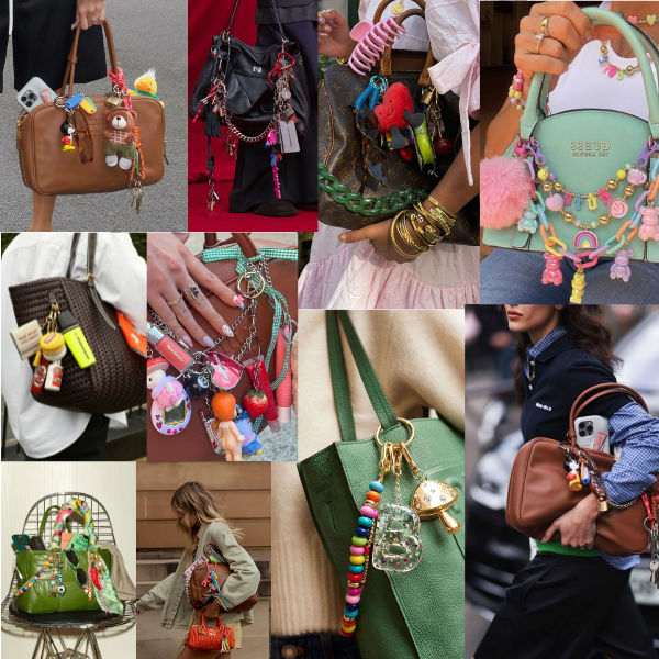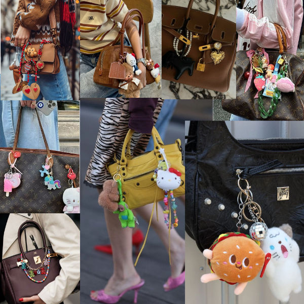Bag charms são pequenos acessórios decorativos que podem ser feitos de pelúcia, acrílico, metal e até cristais. Com formas variadas, como animais, frutas ou símbolos divertidos, eles são uma maneira criativa de personalizar as bolsas e adicionar um toque de estilo extra.