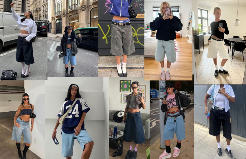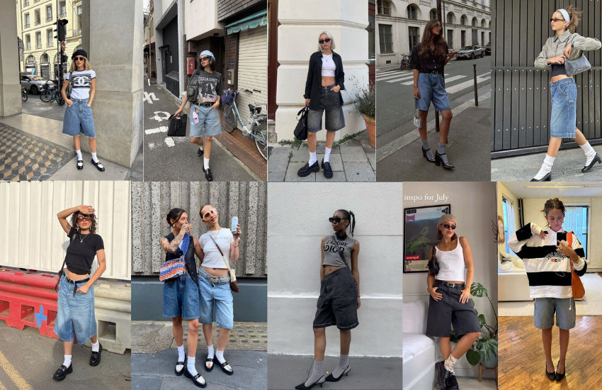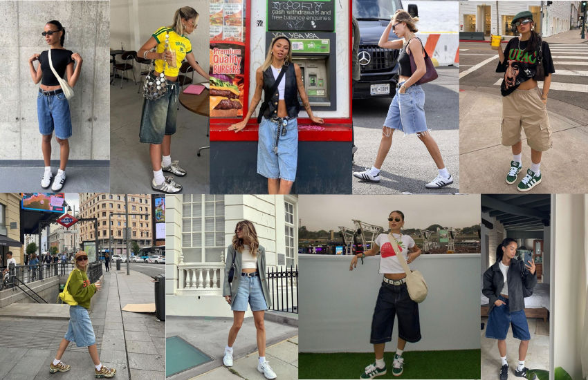 A modelagem! Elas na sua maioria são bem mais largas, algumas parecendo até que você pegou uma bermuda masculina grande! Entre cintura alta e cintura média, com comprimentos que ficam próximos sempre dos joelhos.