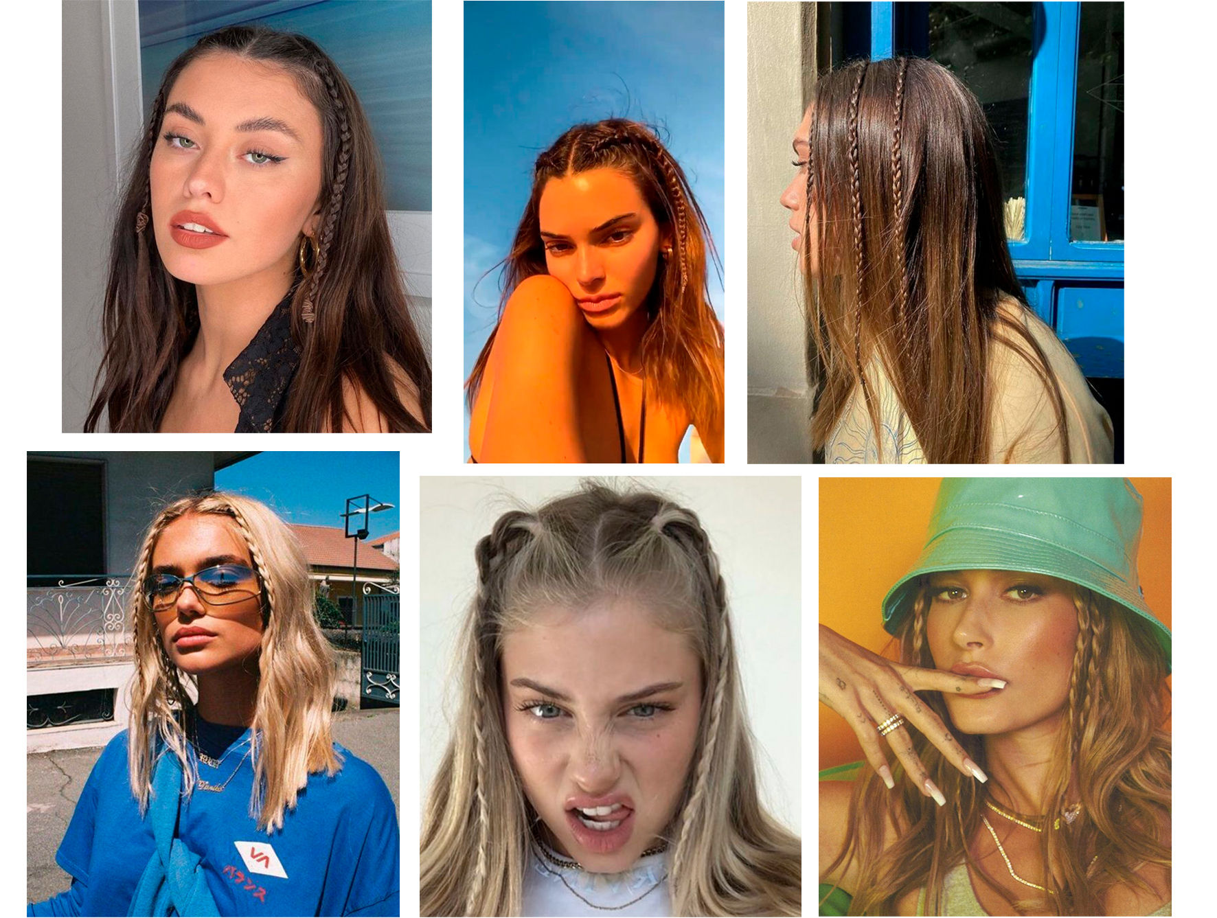 Trancinhas! Da pra brincar livremente, uma ou duas de cada lado. O importante é que elas fiquem bem finas para dar esse efeito. Pode começar o penteado separando uma mecha e fazendo direto a trança ou pode primeiro usar um elástico de silicone e depois iniciar a trança. Também da pra fazer a trancinha embutida como a da Kendal Jenner, na segunda imagem acima.