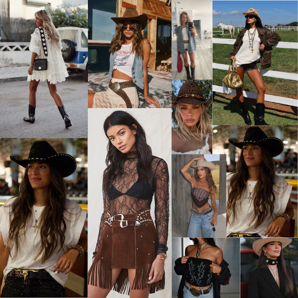 As camisas e coletes jeans, fivelas marcantes, cintos largos e chapéus também entram no jogo, mas o truque é saber dosar, okay amiga? A vibe é mais “cowgirl da cidade grande” do que “rodeo girl”.