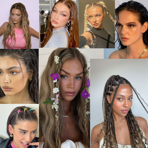 🌸 Tranças estilosas: Desde tranças embutidas e boxeadoras até micro tranças soltas no cabelo, elas trazem um toque boho e ao mesmo tempo moderno.
