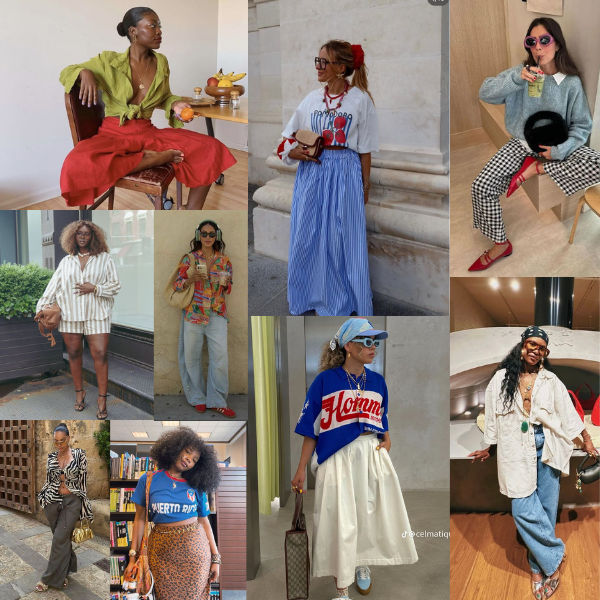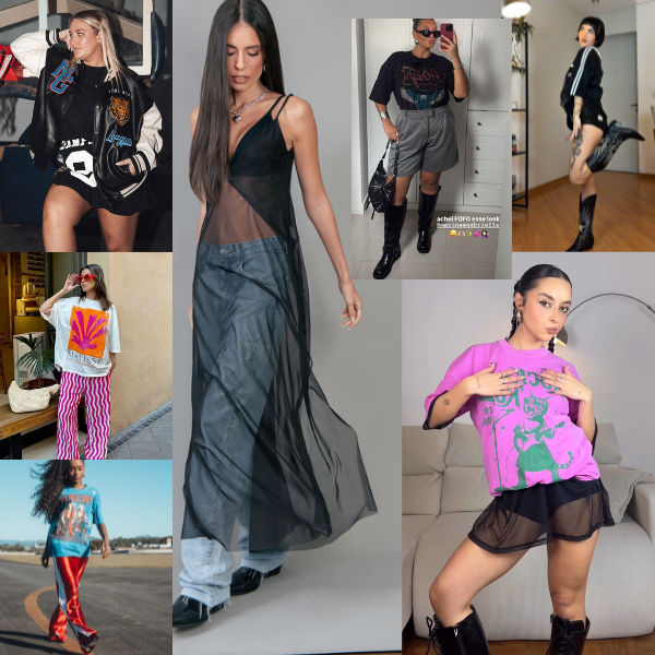 A Cool Descomplicada: calça wide, top cropped, tênis chunky e jaqueta bomber. Ou então, um vestido longo de renda com um super blazer over. O mood é urbano, confortável e com aquele ar "sem esforço" que nunca sai de moda.