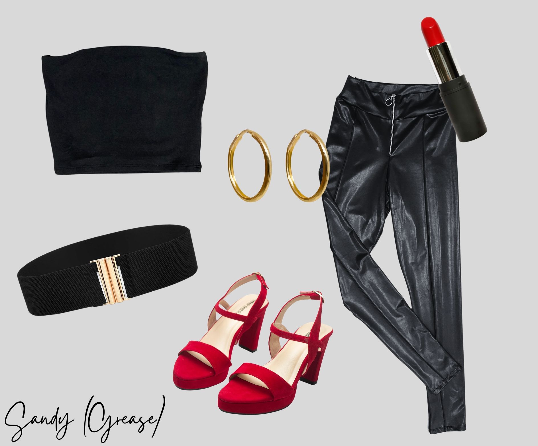 Quem é apaixonada pelo filme Grease? A gente aqui ama muito! Super fácil de fazer, essa fantasia consiste em calça skinny preta, uma blusa ou top preto, salto vermelho, batom, cinto e um par de argolas douradas!