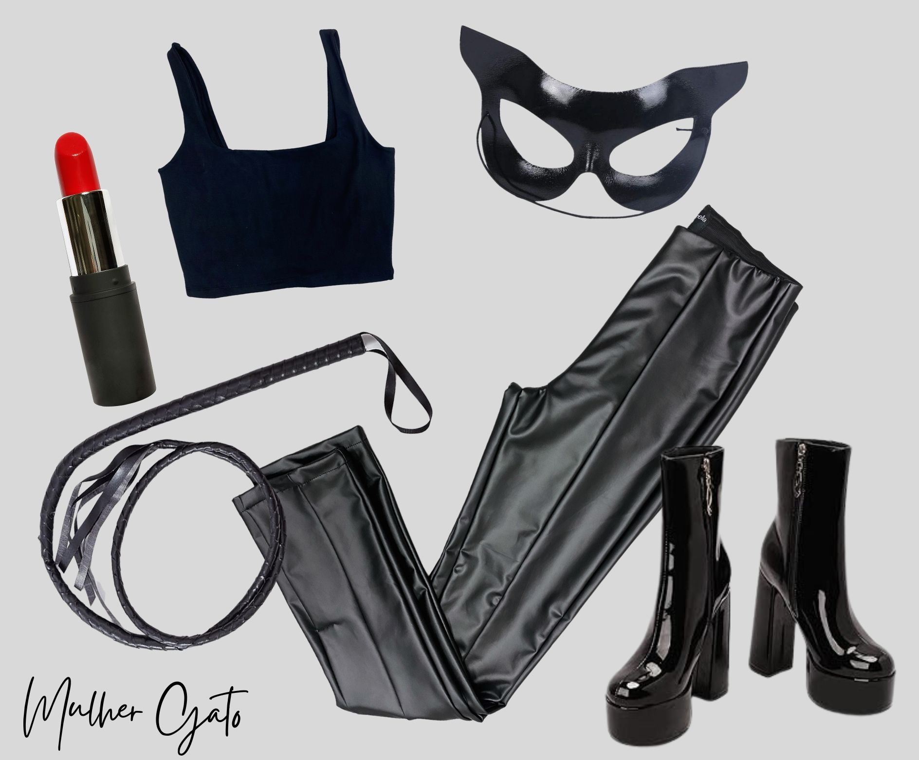 Uma fantasia mais sensual é da mulher gato! Também fácil de montar, você pode usar peças de couro, top ou manga longa preta e acessórios como máscara e chicotinho!