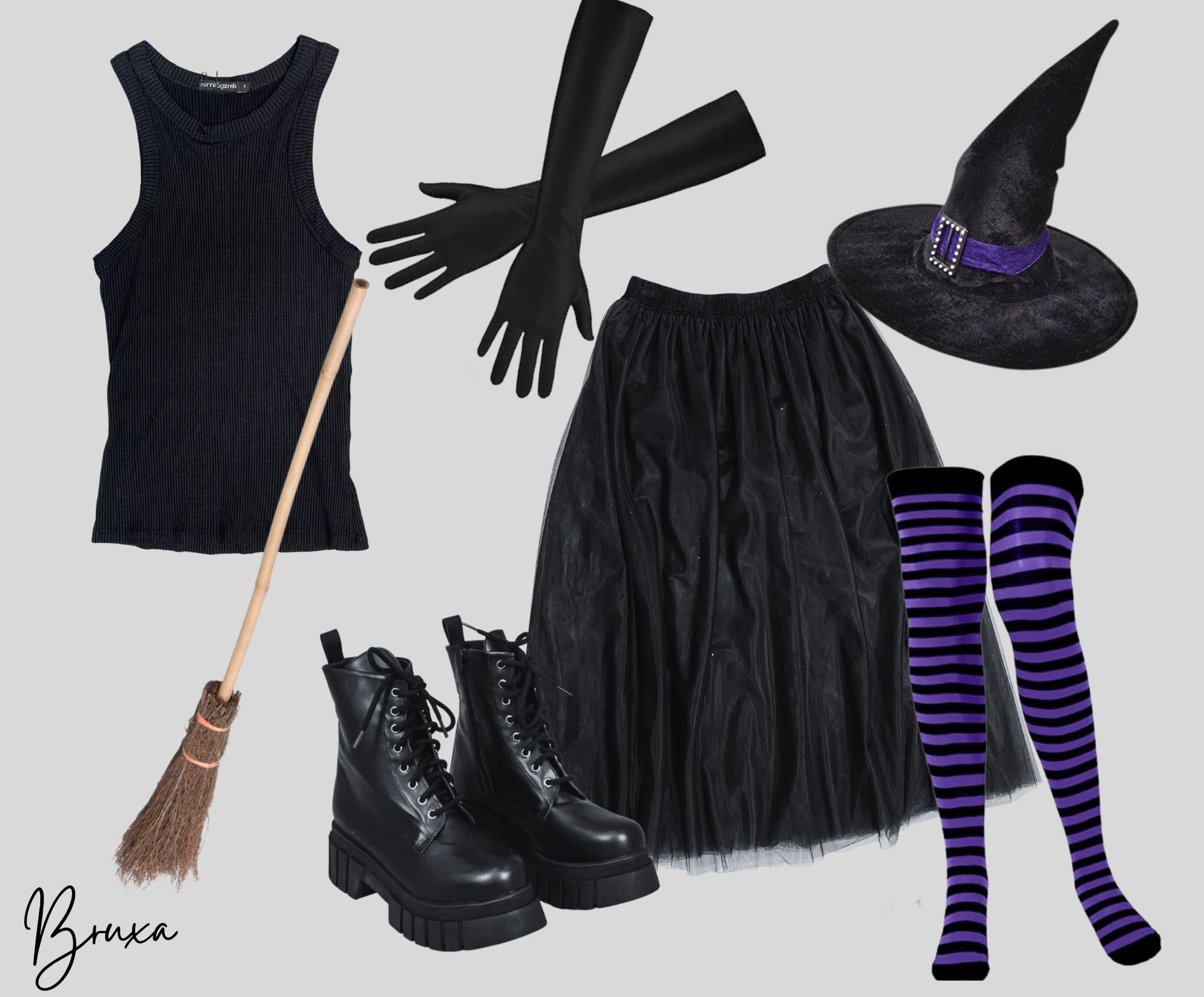 Clássica das clássicas, a Bruxa tem que estar presente! Look preto com saia de tule e acessórios com tons de roxo ficam perfeitos! Ah! Não esqueça da vassoura!