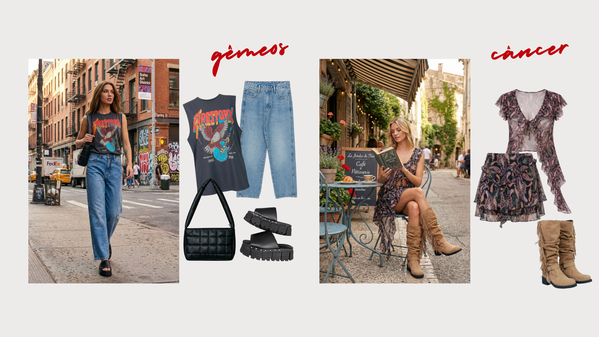 Gêmeos é sobre marcar presença. Mesmo com uma calça jeans e camiseta, consegue trazer shapes diferentes pra ousar em qualquer momento.
