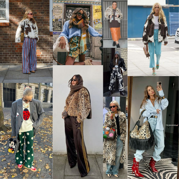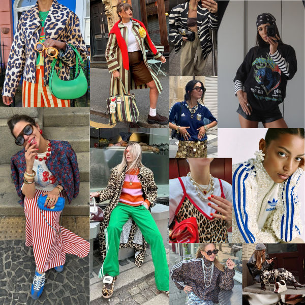 Florais com animal print? Listras com poá? SIM E SIM. O segredo do maximalismo está justamente em quebrar regras e confiar no olhar. O mix de estampas cria um visual rico, cheio de informação e personalidade. A dica M&G é equilibrar pelas cores: escolha uma paleta em comum pra deixar tudo mais harmônico, mesmo no meio do “caos fashion”.
