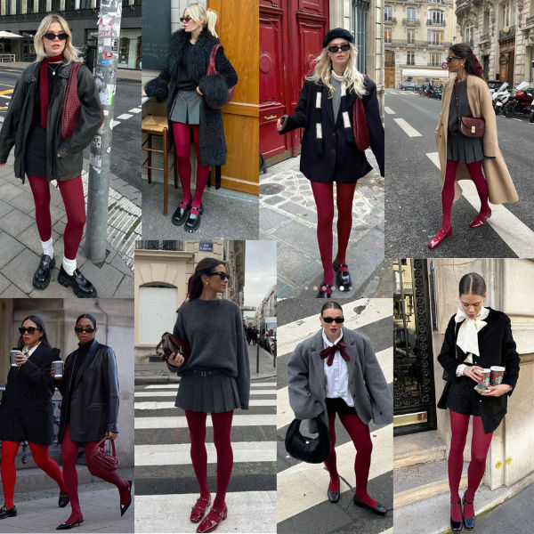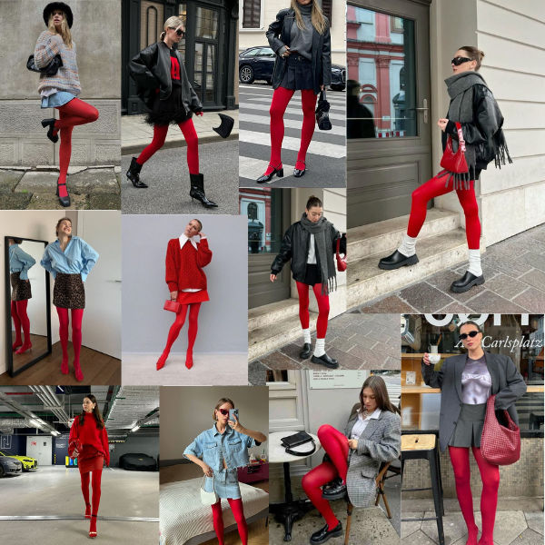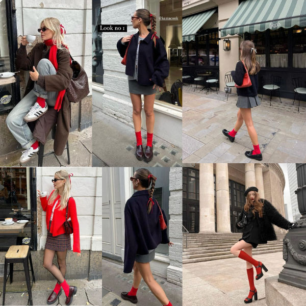 As propostas são ousadas, entre looks totalmente vermelhos e outros com mistura de texturas e estampas. Eu particularmente começaria apostando em looks mais clássicos e neutros para iniciar minha carreira nessa Trend. Vê-se muito esse tipo de meia sendo usada com os calçados preferidos dessa estação; as sapatilhas e os mocassins. Esse combo meia vermelha + sapatilhas compõe muito bem com alfaiataria, saias em pregas e maxi blazers.