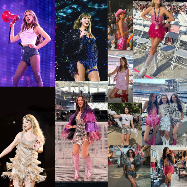 Taylor Swift é praticamente um case de moda por fases criativas. Cada era musical vem com uma identidade visual completa e isso impacta diretamente tendências. Do western glam ao cottagecore, do preppy ao sparkle stage look, ela transforma cada album e turnê em um novo estilo, e os fãs AMAM!