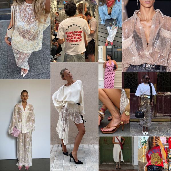 A estética "lingerie à mostra" continua forte, mas agora mais elegante: com tops estruturados, hot pants fashionistas e peças de renda combinadas com alfaiataria moderna.