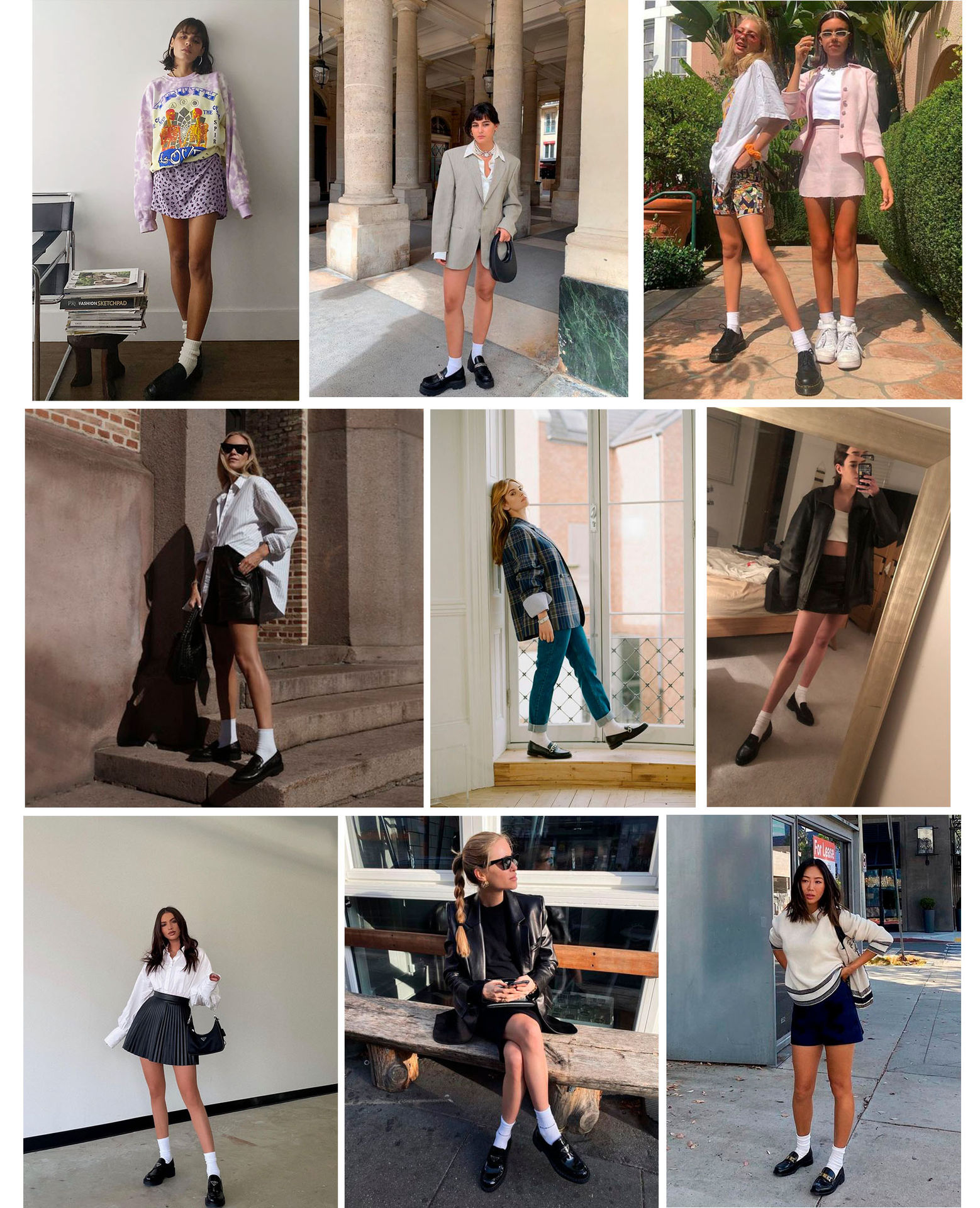 Outra peça fundamental para deixar o look ainda mais moderno é o uso de meias, brancas, pretas, mais finas, mais grossas, mais altas ou baixas. Aí a brincadeira é livre!
