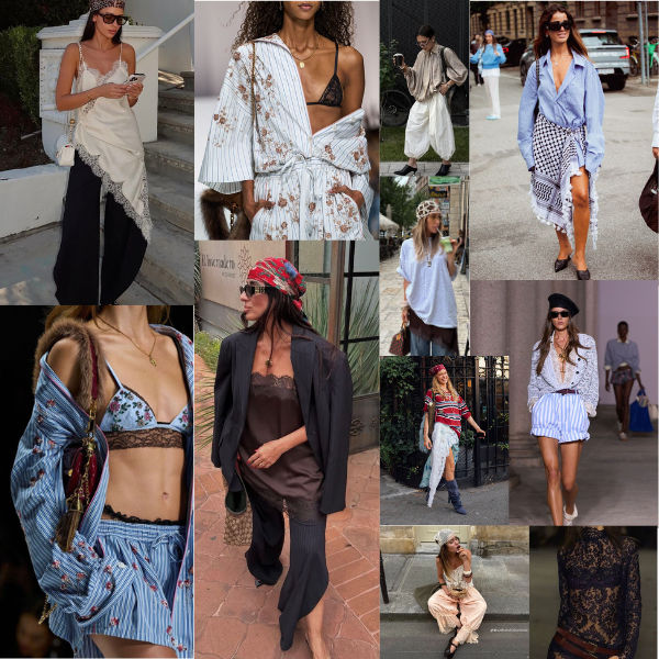 Em contraponto ao maximalismo, o minimalismo nostálgico traz aquela estética limpa, sensual e despretensiosa dos anos 90. Os destaques vão para vestidos retos, slip dress (principalmente com recortes de renda), regatas com aplicações delicadas e a volta da cintura baixa (drop waist), agora com um olhar mais moderno e chic.