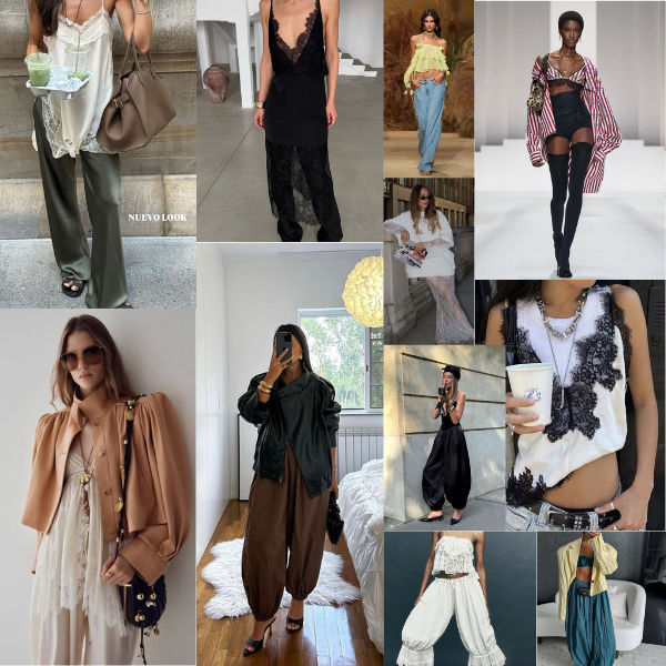 Jeans, t-shirts, rendas, peças black, metalizados e terceiras peças continuam sendo a base perfeita para testar essas novidades sem perder autenticidade.
