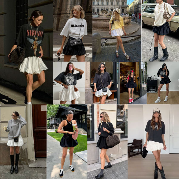 E como a gente sabe que uma peça emplaca? não só porque temos marcas que ditam moda lançando em suas coleções e vááárias influencers vestindo. Mas principalmente porque novas vertentes dessa modelagem já estão surgingo. No início eram ou brancas, ou pretas. Agora já surgem novas propostas, com estampas, ou ainda em forma de vestidos balonês e saias em comprimentos midi ou longo também com a forma balonê. Mas esse é um post para logo logo. Vamos com calma!