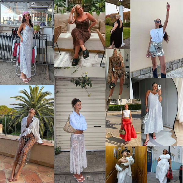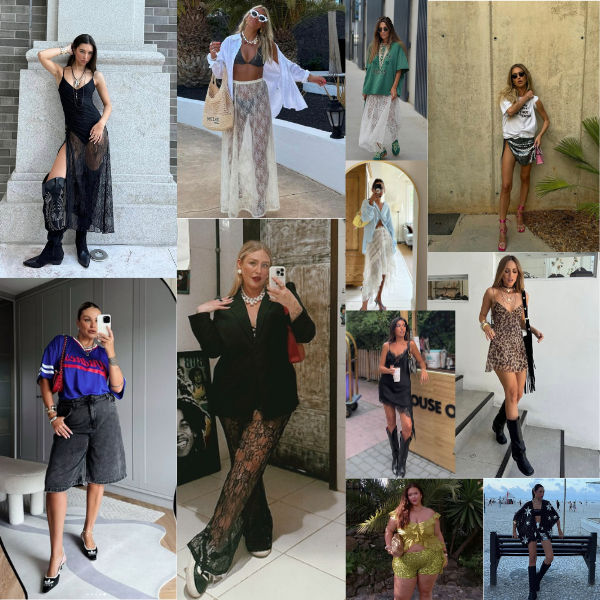Aqui o único dress code possível é: fresh, sexy e confortável. Transparências, croppeds, tops com brilho e tecidos leves dominam a cena. O truque de styling é misturar: paetê + algodão, brilho + jeans, glamour + casual. Monte um look effortless que funciona do dia pra noite.