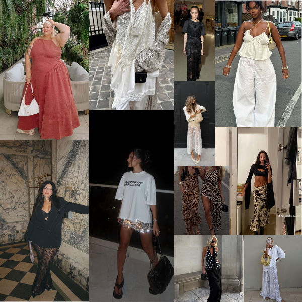 Paetês, metalizados e recortes estratégicos entram em cena para produções poderosas. Aposte em vestidos curtos, conjuntos impactantes ou combinações inesperadas com t-shirts fun e até peças de renda, aquele contraste cool que foge do óbvio e garante um visual beem moderno. Vale ousar nas estampas animal print também, okay? SEMPRE bem-vindas! Looks all black, estampas em alta... Esse é o momento de ousar!