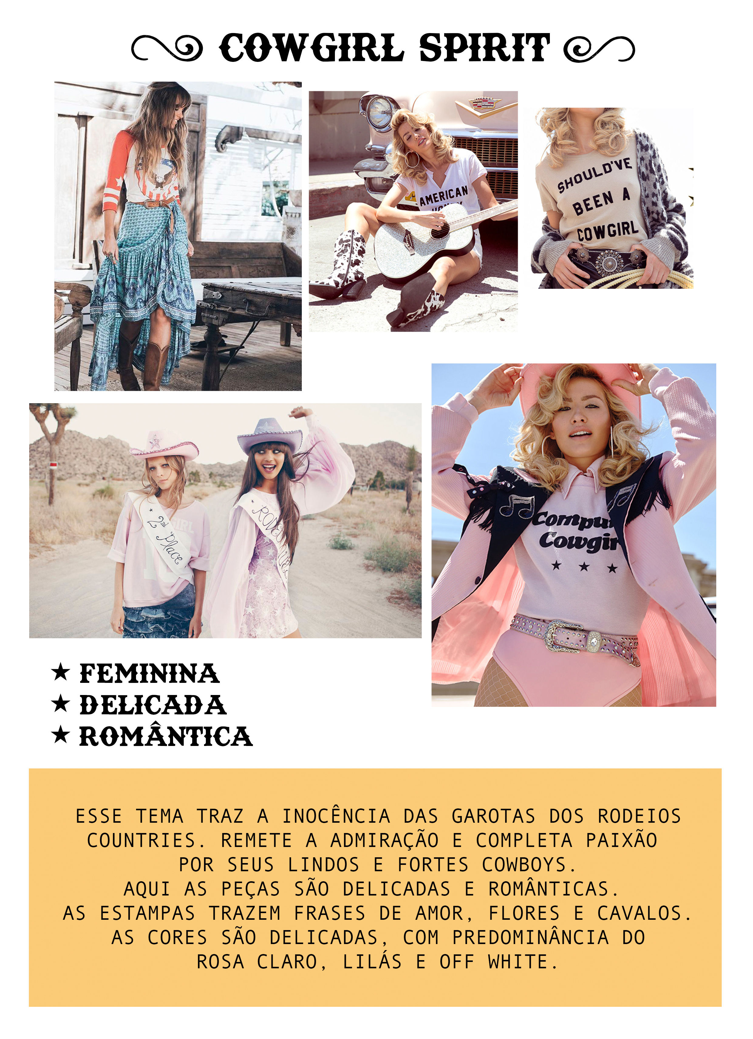 E vamos explicar agora para vcs, quais foram os 4 temas que escolhemos para compor a coleção Go West Girl que está fazendo o maior sucesso entre nossos clientes finais e lojistas.