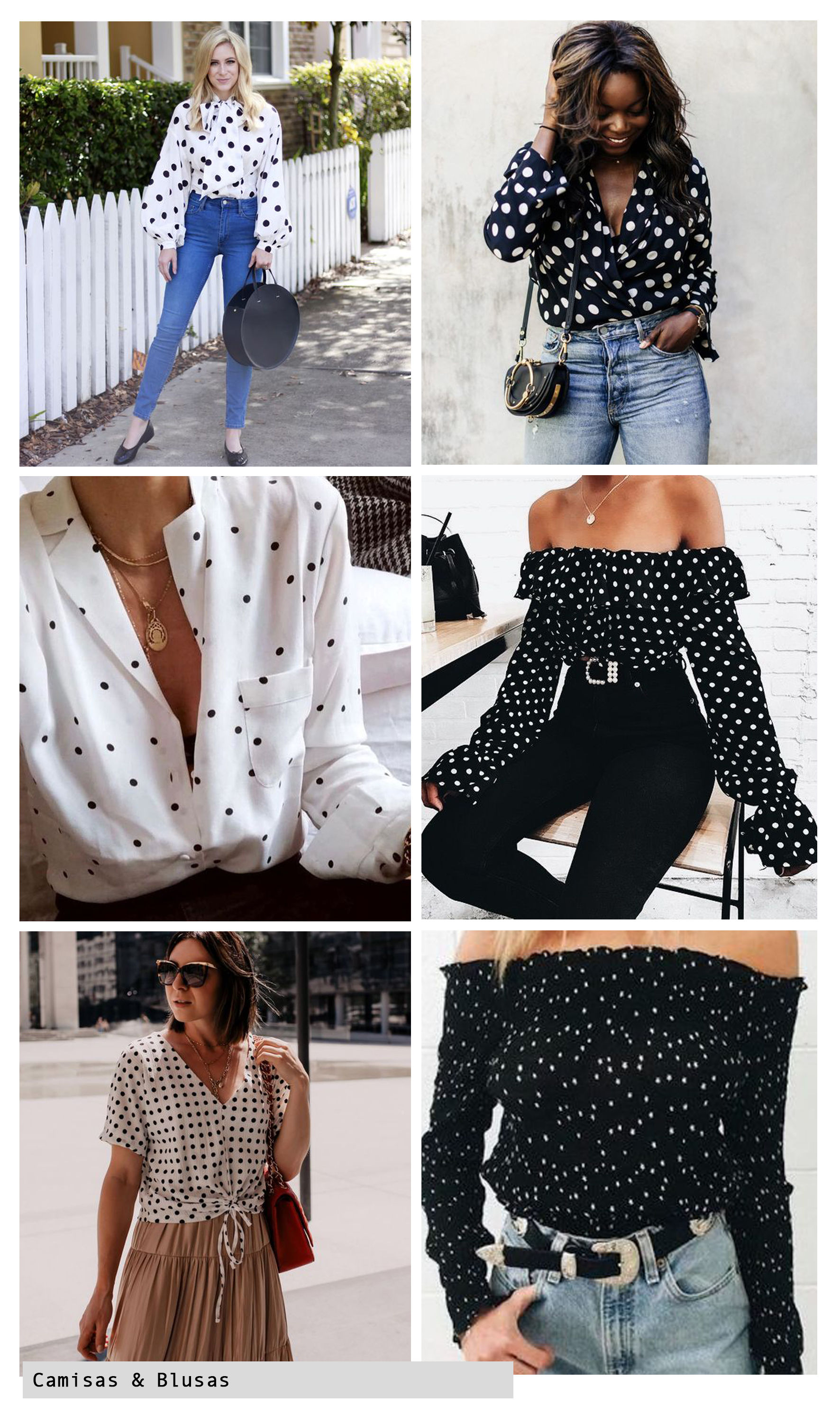 Blusas e Camisas de poá: A GENTE AMA, além de serem super versáteis, você pode combinar com uma saia midi, bermudas e calças mom jeans. Se for usar a camisa é legal deixar os últimos botões abertos, para juntar as duas pontas e fazer uma amarração também, fica super cool!