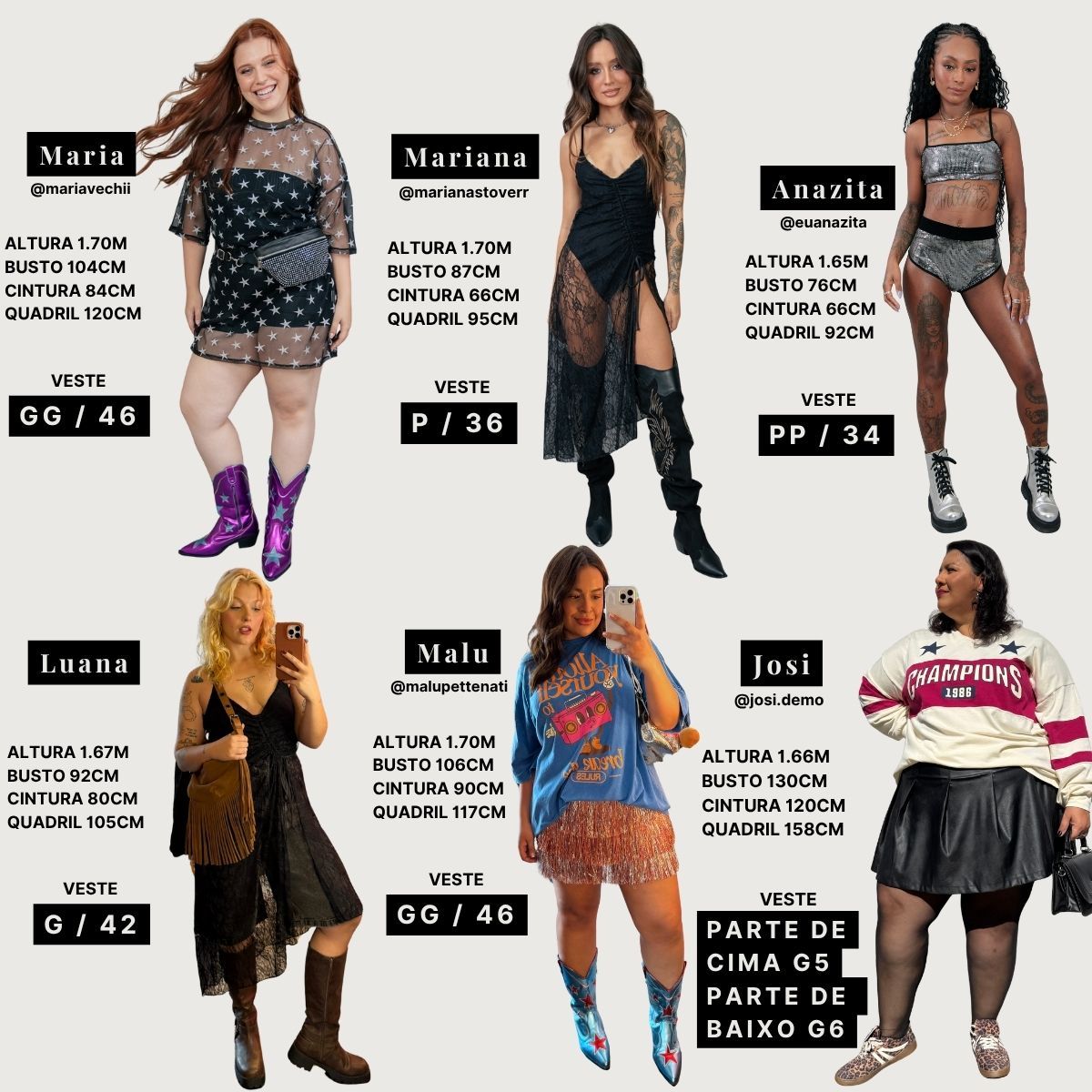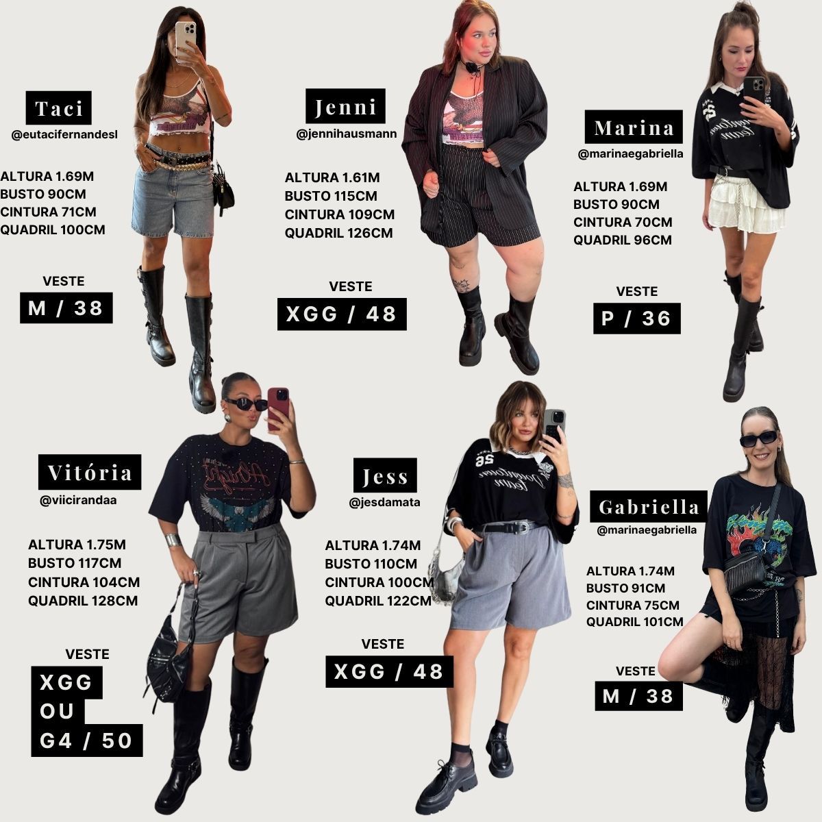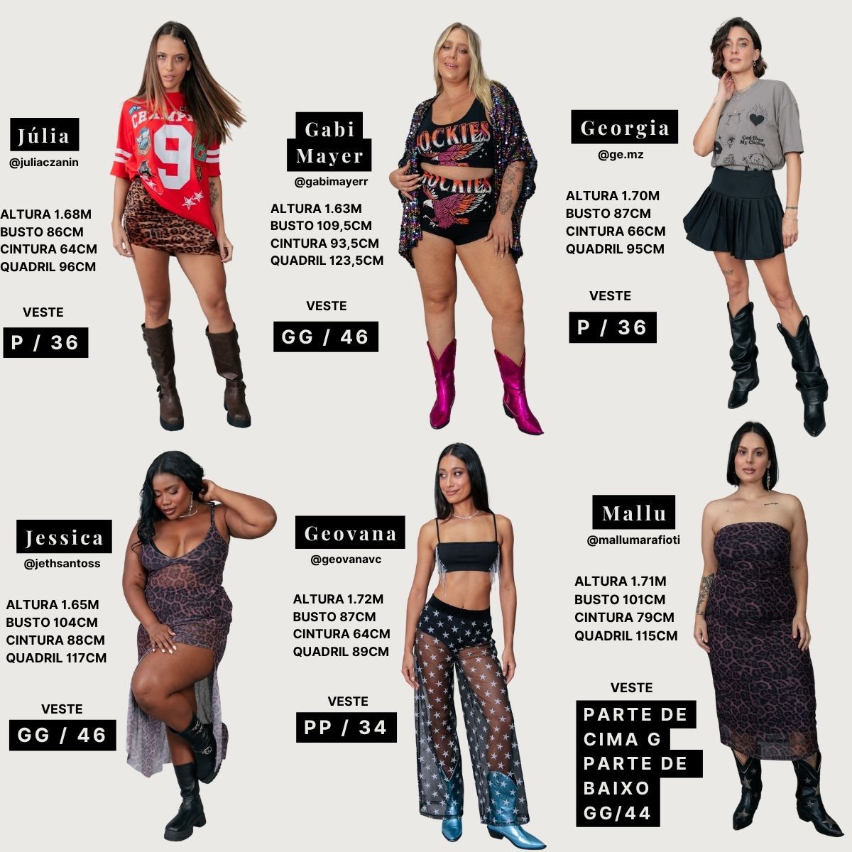 Você ainda pode conferir na descrição de cada produto que há medidas das modelos e o tamanho que estão vestindo.