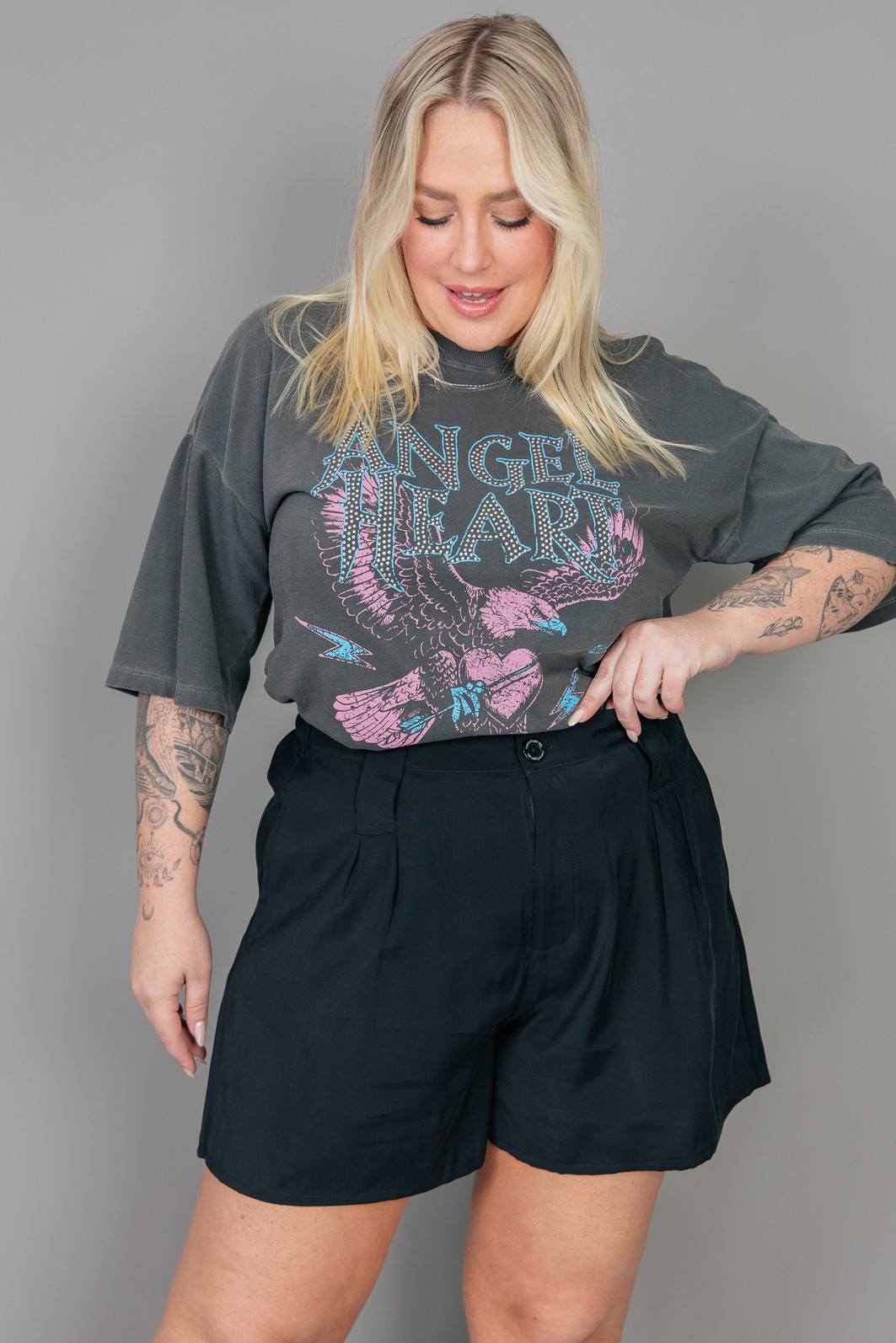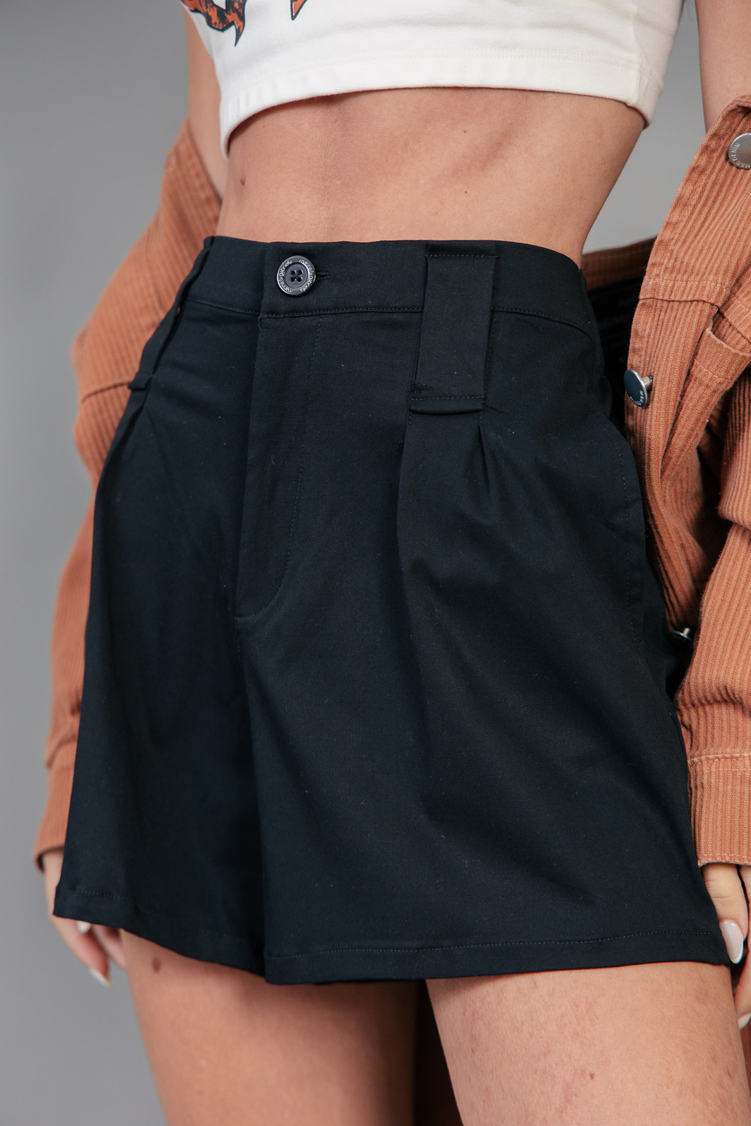 Bermuda em tecido de viscose básico e necessário! Tecido leve, frente com pences, bolsos faca e abertura com botão e zíper. Costa com elástico no cós para melhor ajustar no corpo. Passantes largos para quem quiser usar com cinto.