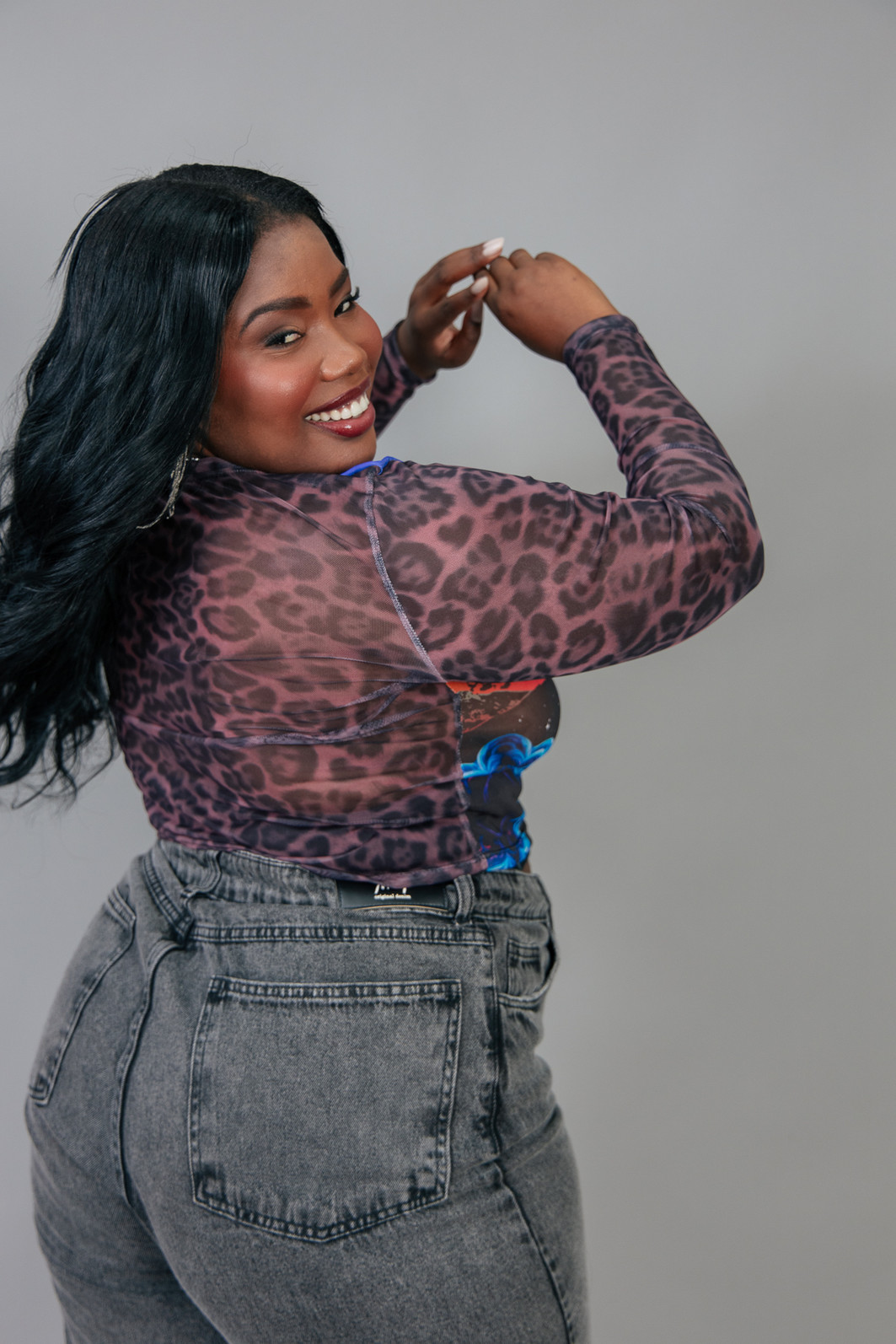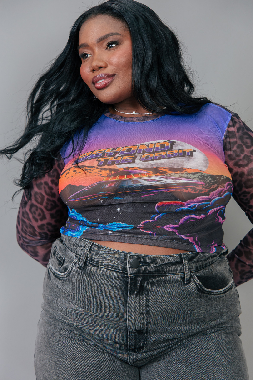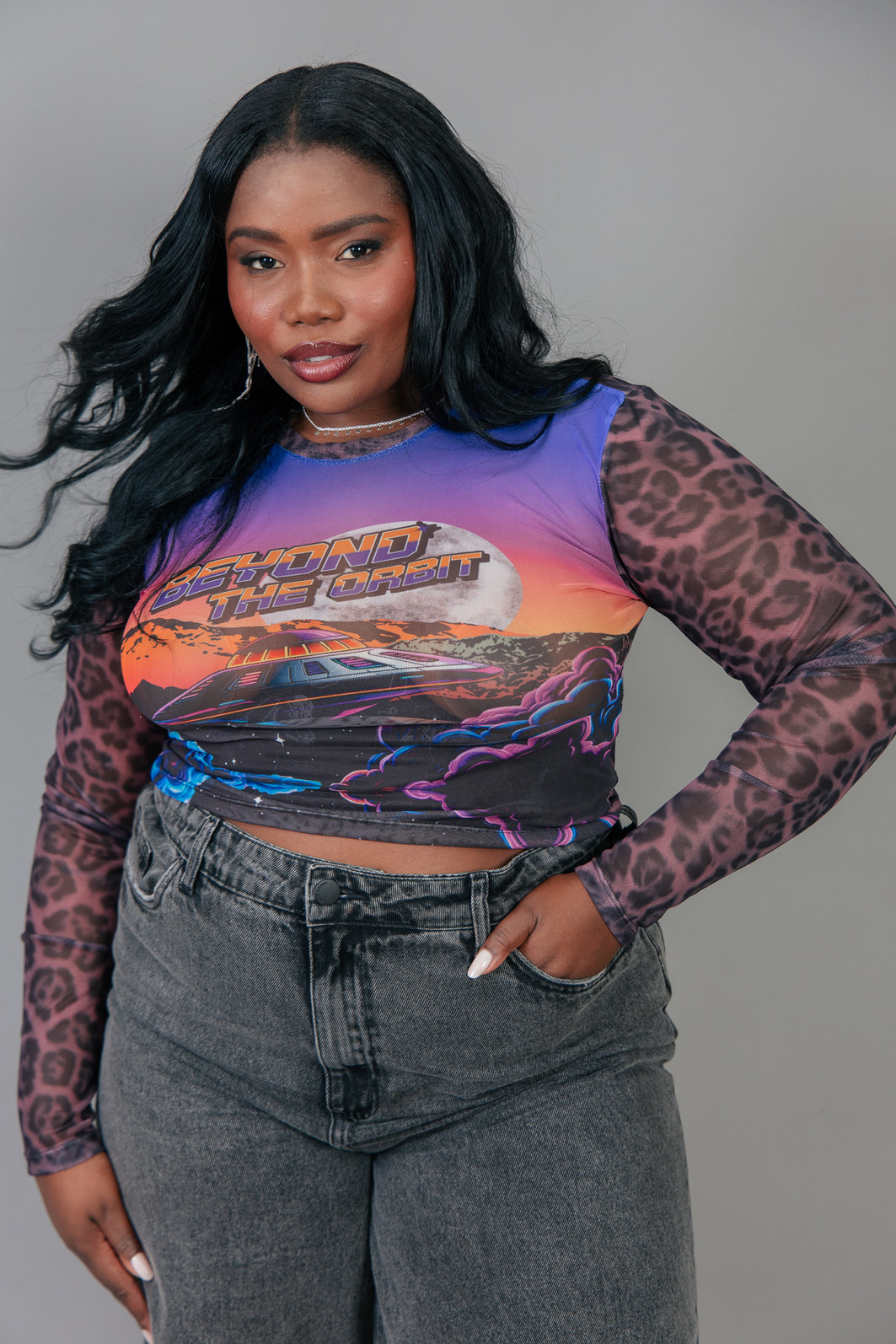 Blusa com modelagem mais justinha toda em tule sublimado com estampa exclusiva. Tecido bem leve e macio com elastano.