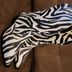 Bota estilo western em material sintético na cor branca com estampa de zebra preta. Salto de 6cm e cano médio 23cm.