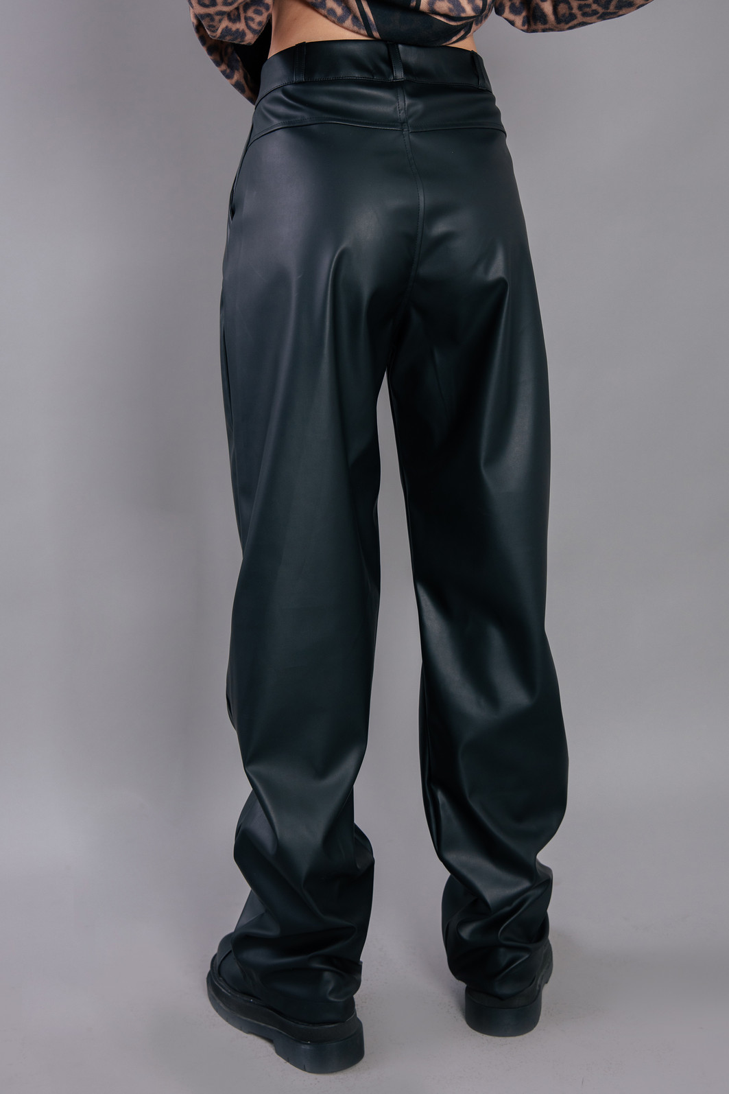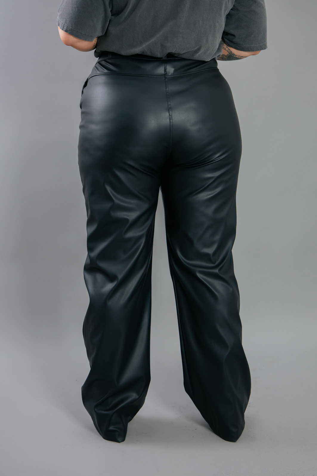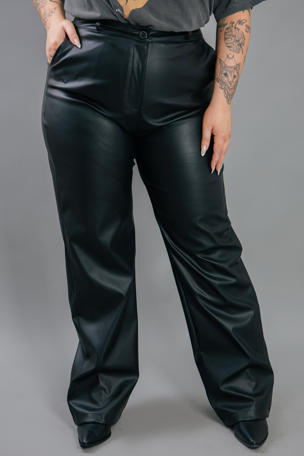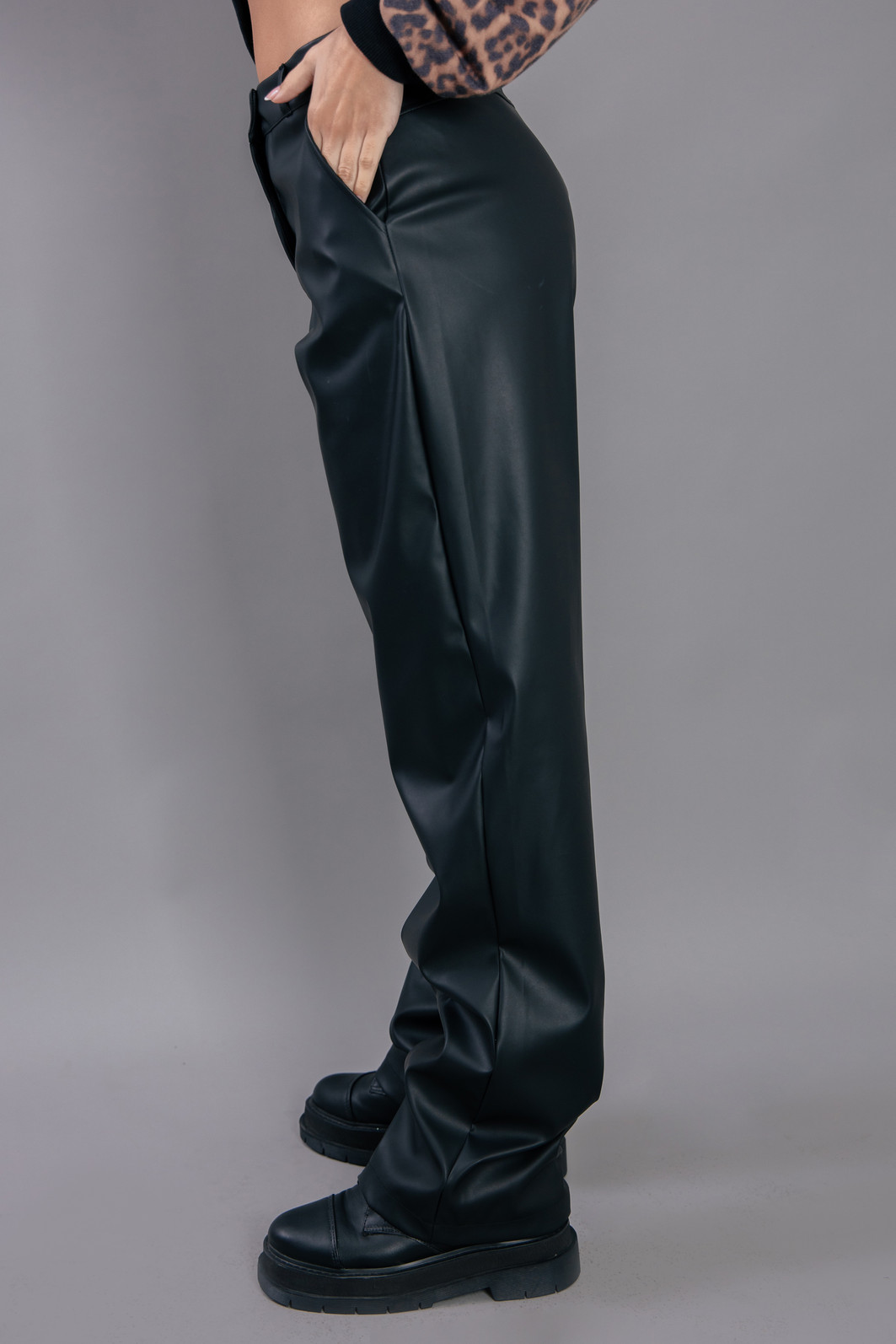 Calça em napa cor preta. Não tem elastano na composição mas estica e é super confortável. A modelagem é tipo wide com a cintura alta e pernas mais solltas.
