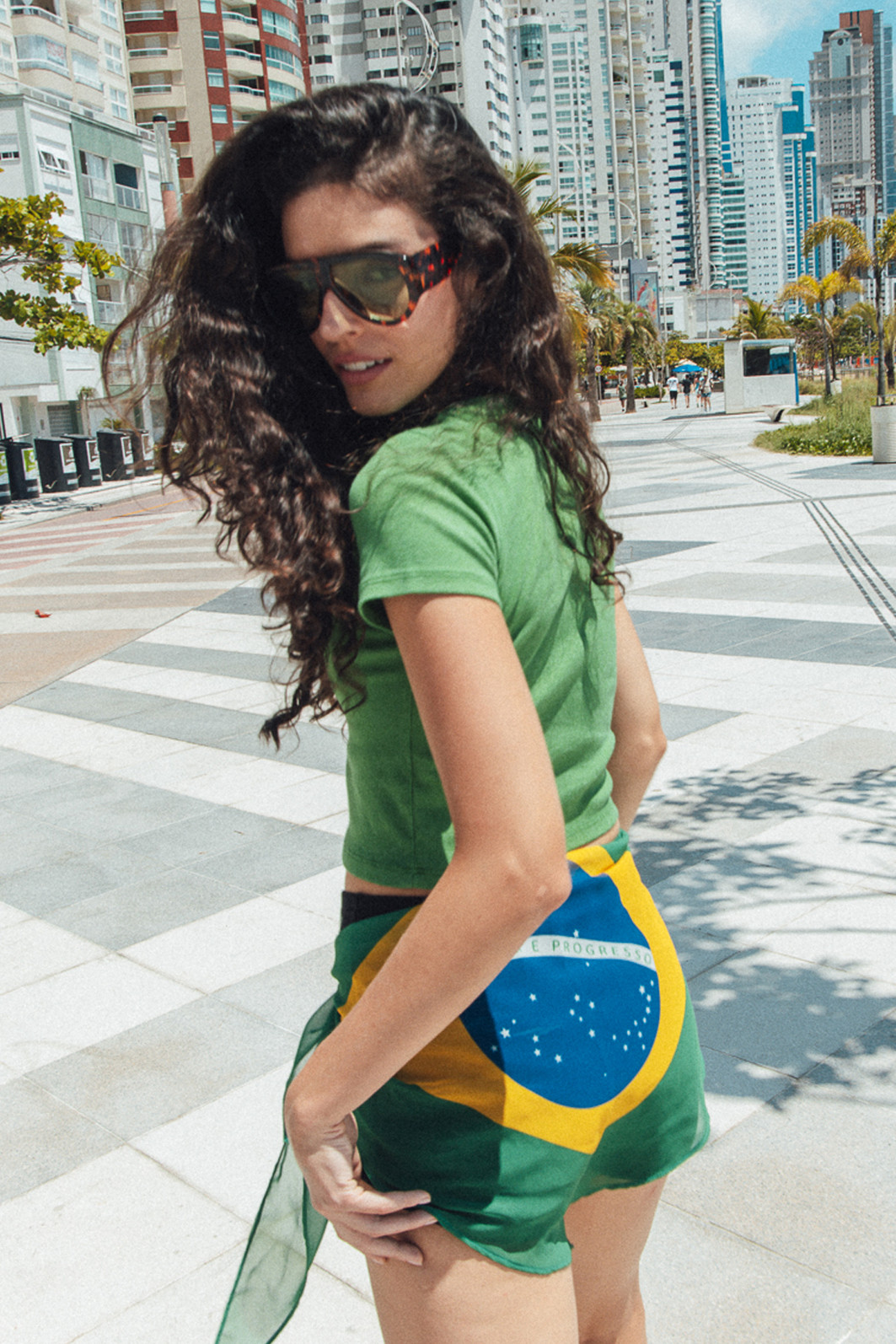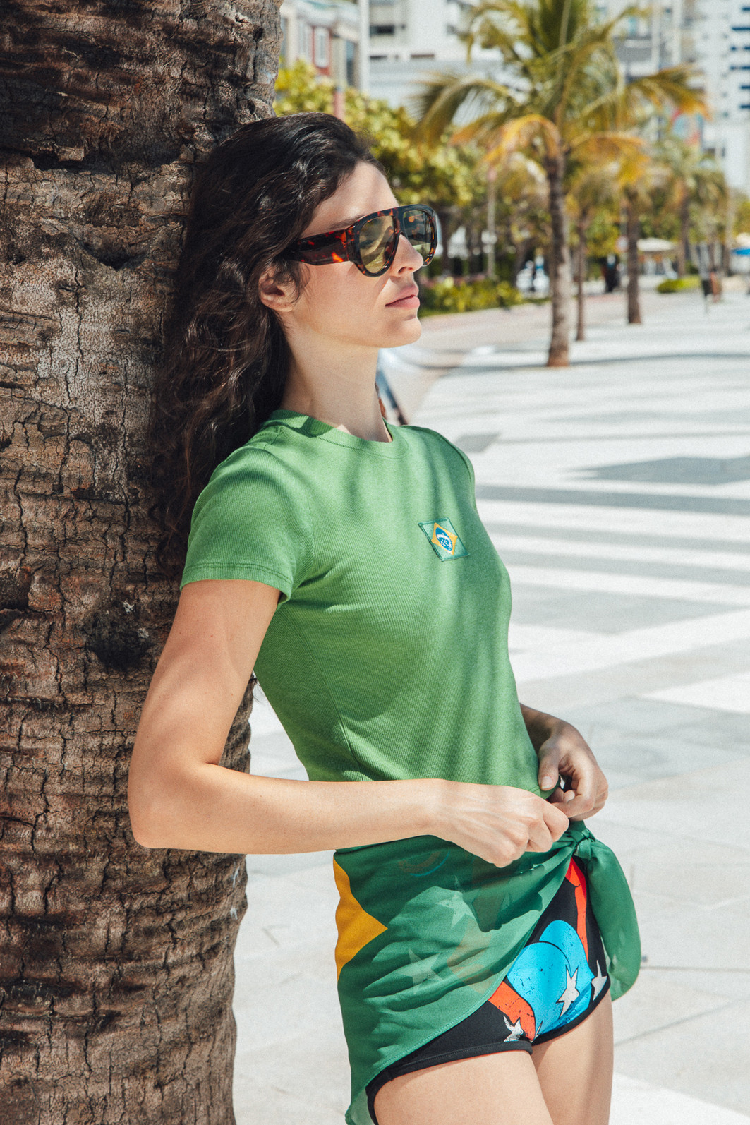 Brazilian Aesthetic, a babylook mais queridinha da torcida feminina do Brasil na copa! Blusa baby tee em malha canelada tingida na cor verde em modelagem feita para ficar beeem justinha no corpo. Acabamentos em fru-fru e aplicação de patch bordado com a bandeira do Brasil frente.