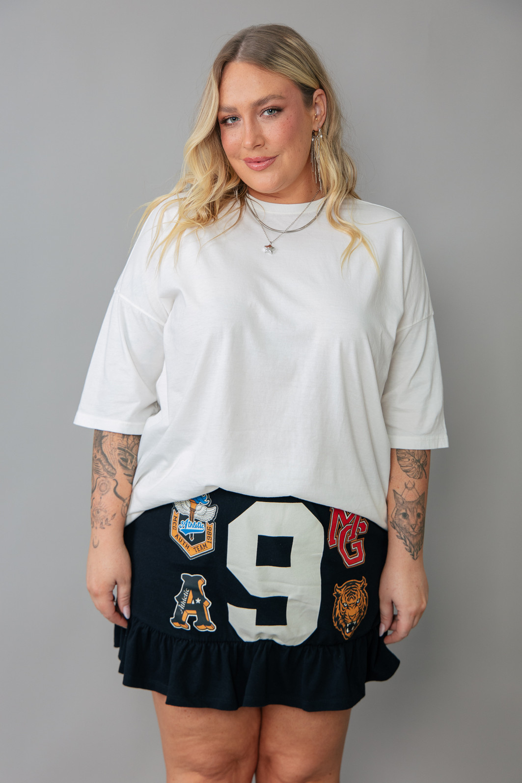 Altura 1.63 | Busto 109,5 | Cintura 93,5 | Quadril 123,5 | Panturrilha 46 | Manequim GG/46