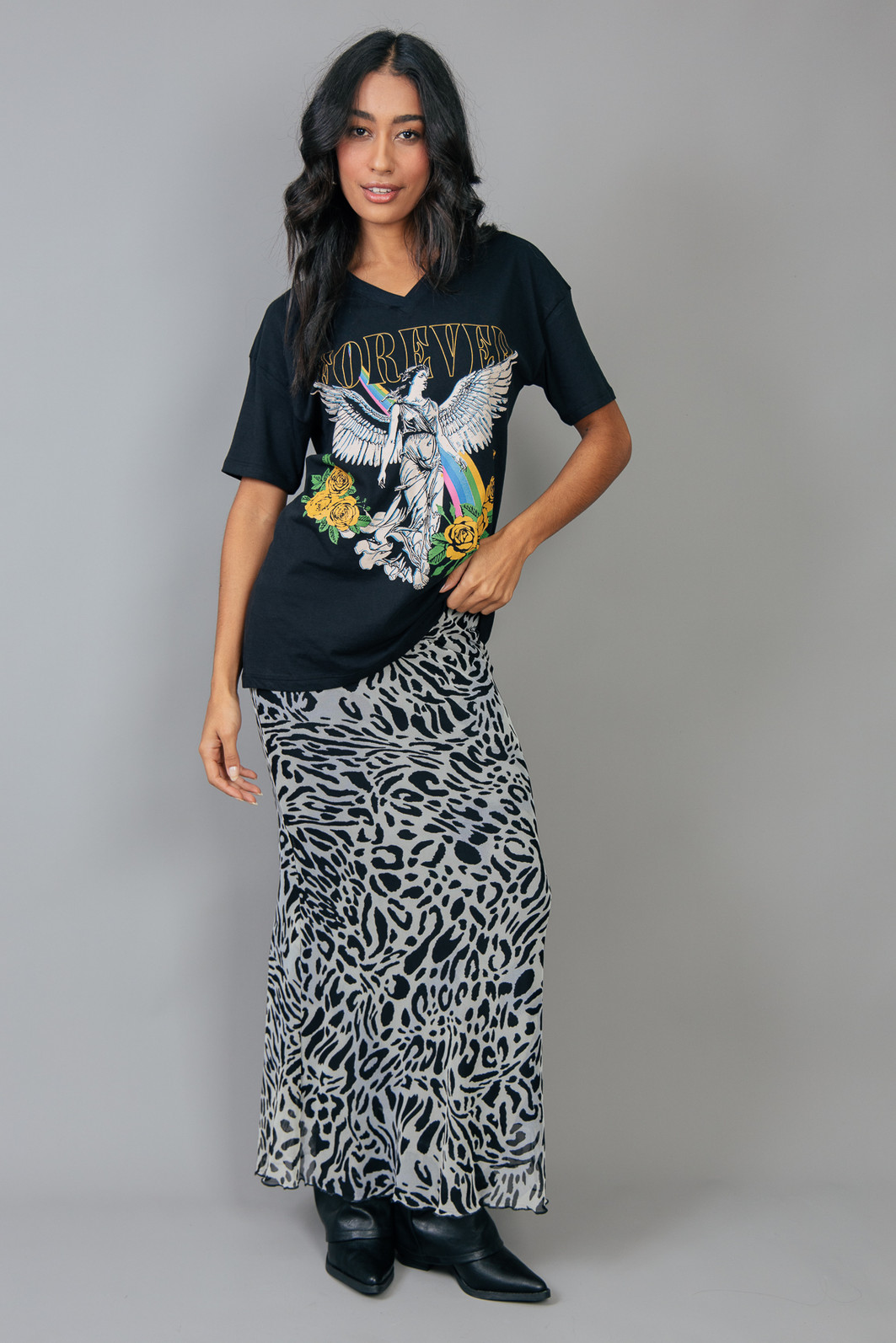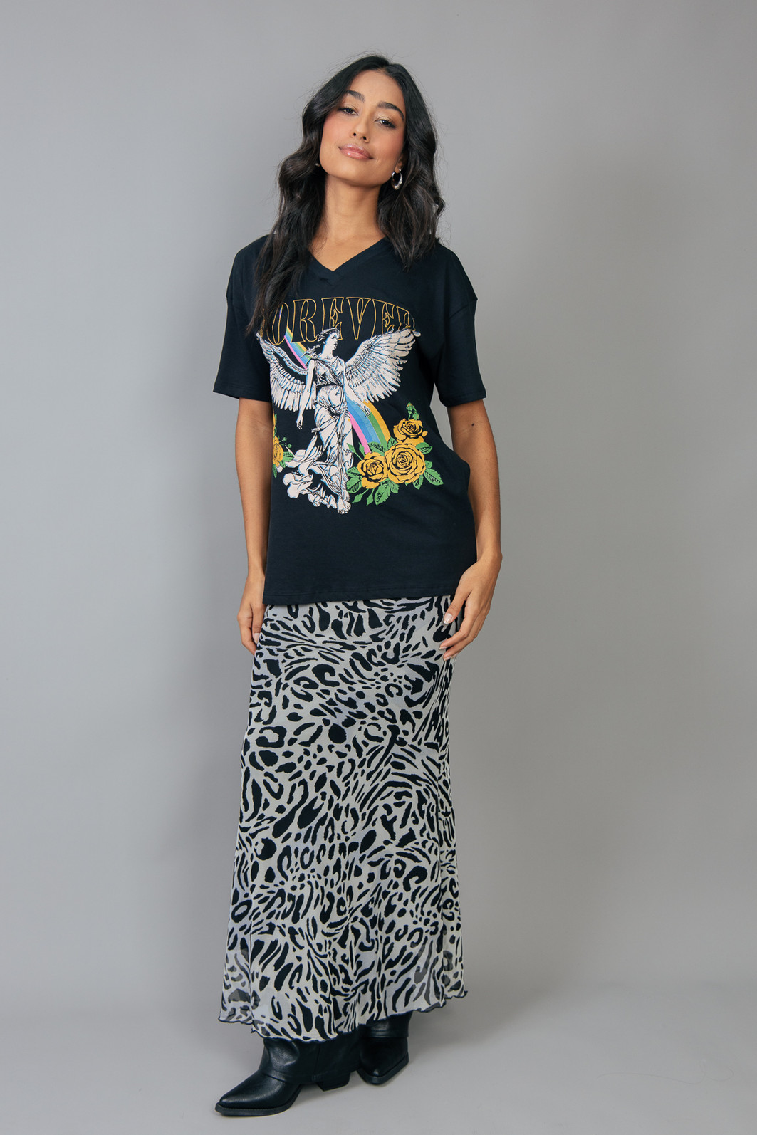AdicionarSimplesmente perfeita! Essa saia em comprimento longo vem toda em tule com estampa de animal print, possui forro preto. Super confortável pois tem elastano. Elástico na cintura super confortável, a modelagem está moderna e faz com que valorize o corpo e combine com tudo!
