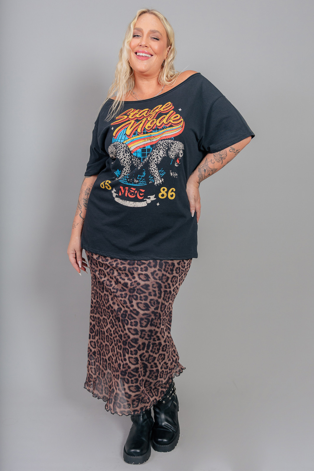 Esgotando em 3... 2... Saia maravilhosa tecido de tule super macio com transparência, estampa sublimada de onça. Possui forro com elastano na cor preto. Elástico embutido no cós para ajustar.