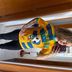 T-shirt em malha super leve cor amarela com detalhes em ribana cor verde nos punhos e gola. Estampa frontal vintage.