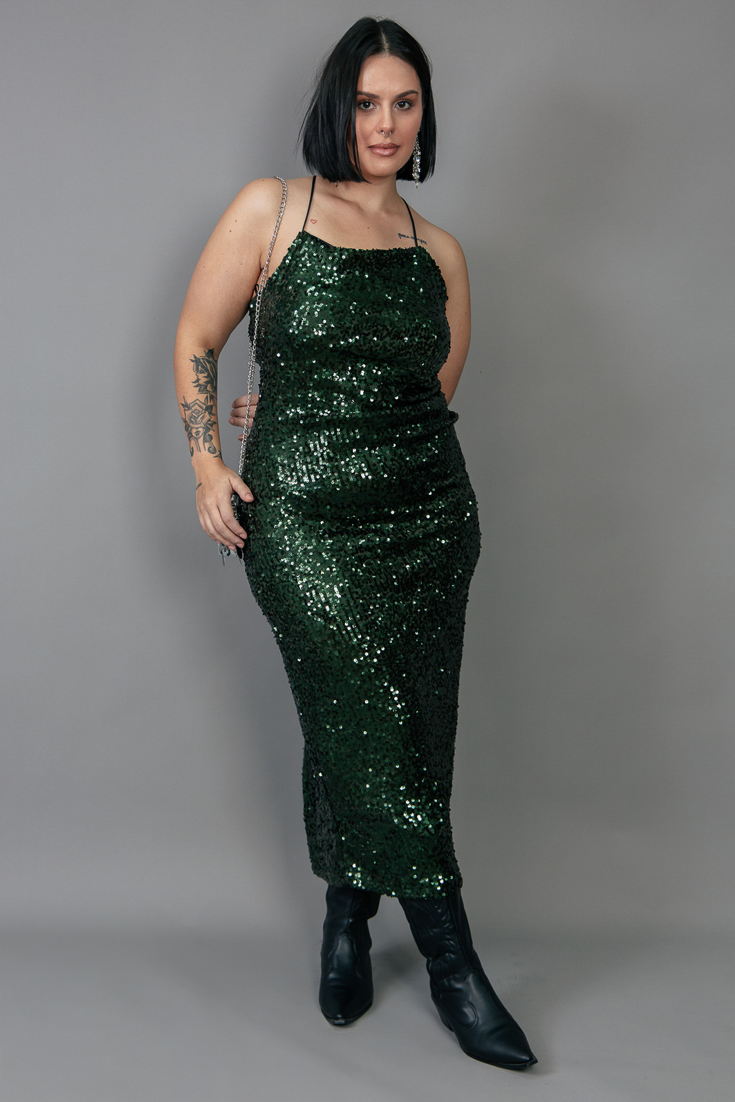 Simplesmente DI-VI-NO! Em uma modelagem pensada em valorisar as curvas femininas, vestido todo em paetê na cor verde oliva. Tecido com bastante elastano por isso ajusta bem no corpo e trás muito conforto além de ser todo forrado. Alças em rolotê de elástico e você ajusta conforme precisar!