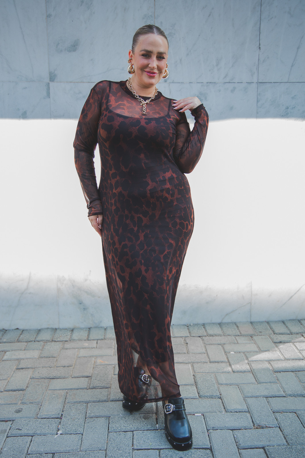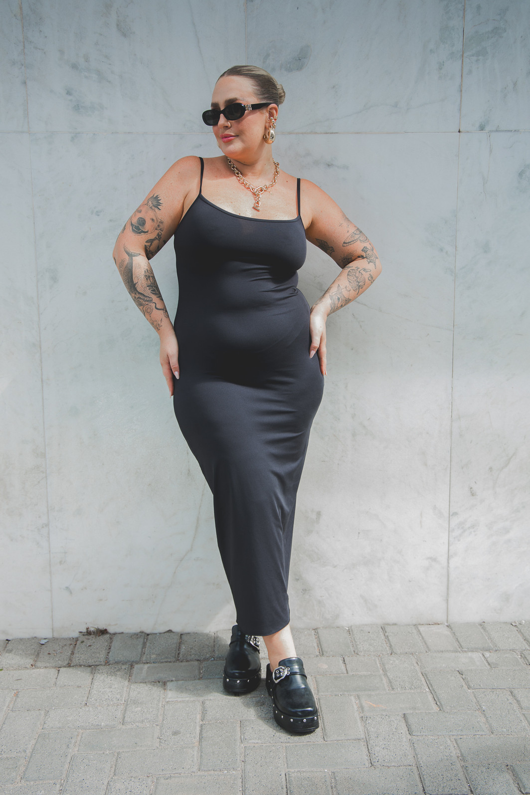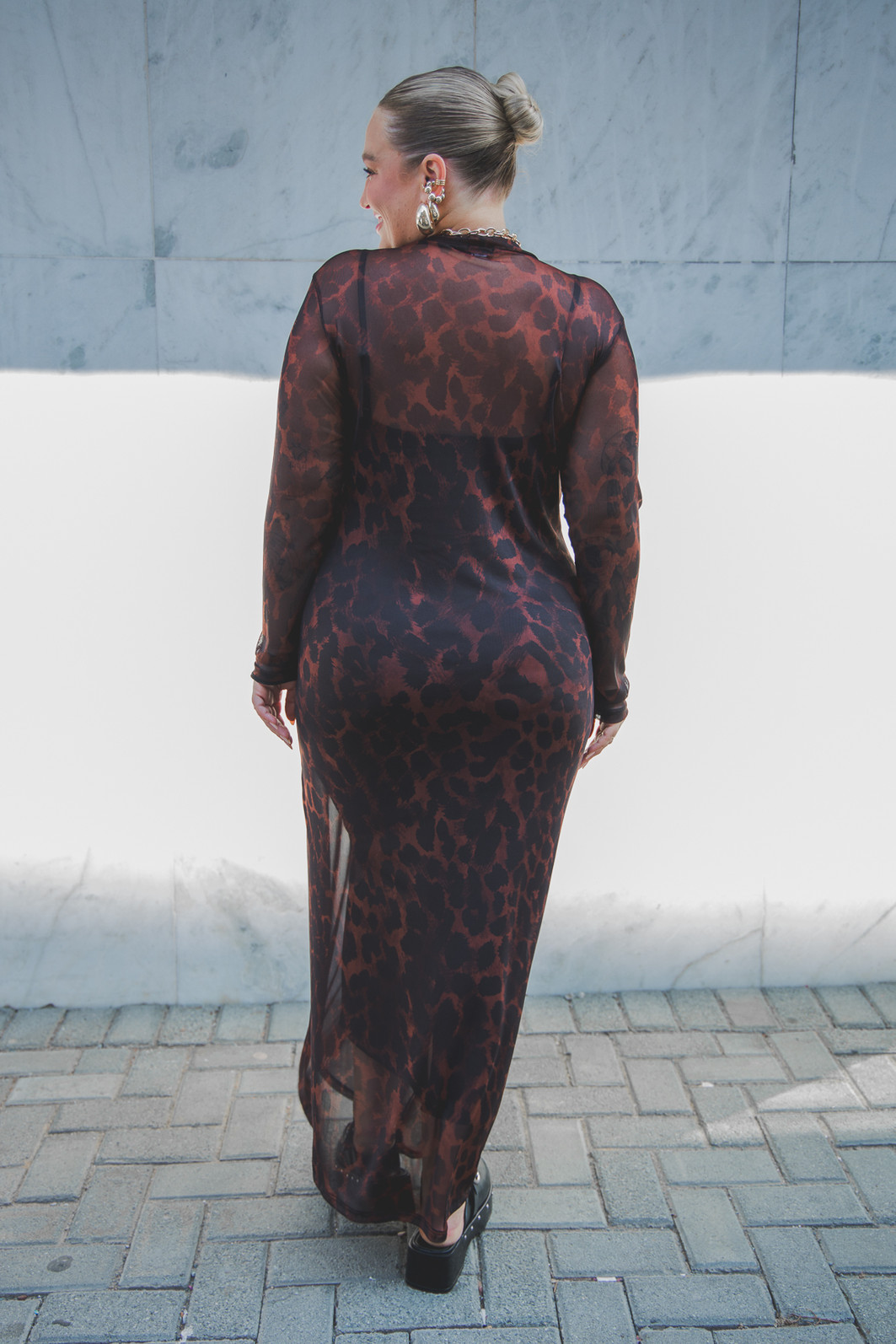 Altura 1.63 | Busto 109,5 | Cintura 93,5 | Quadril 123,5 | Panturrilha 46 | Manequim GG/46