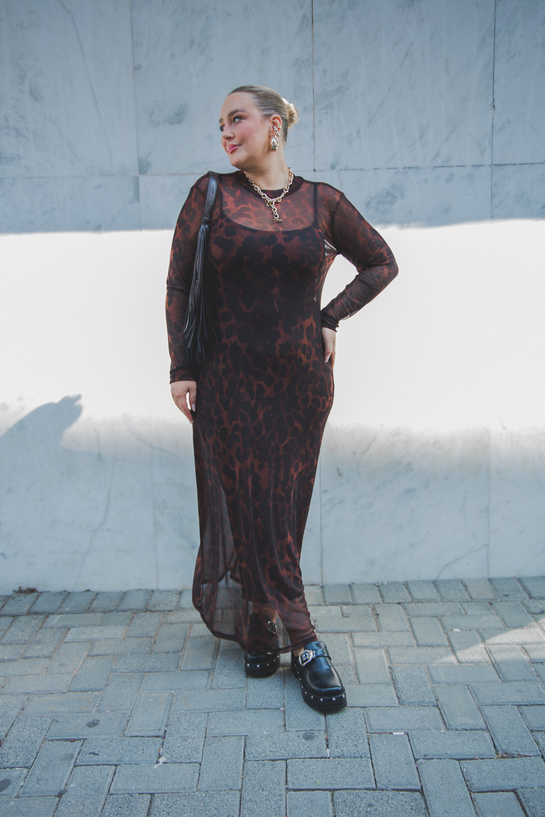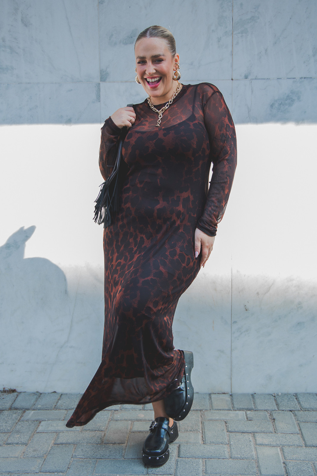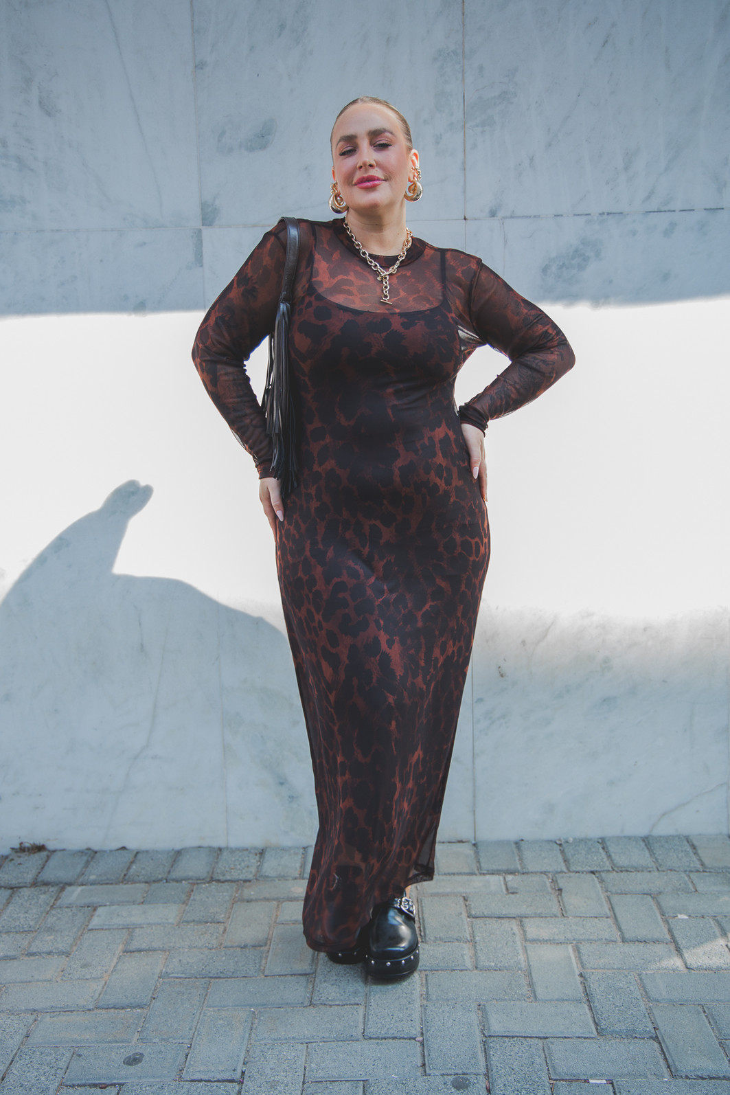 Altura 1.63 | Busto 109,5 | Cintura 93,5 | Quadril 123,5 | Panturrilha 46 | Manequim GG/46